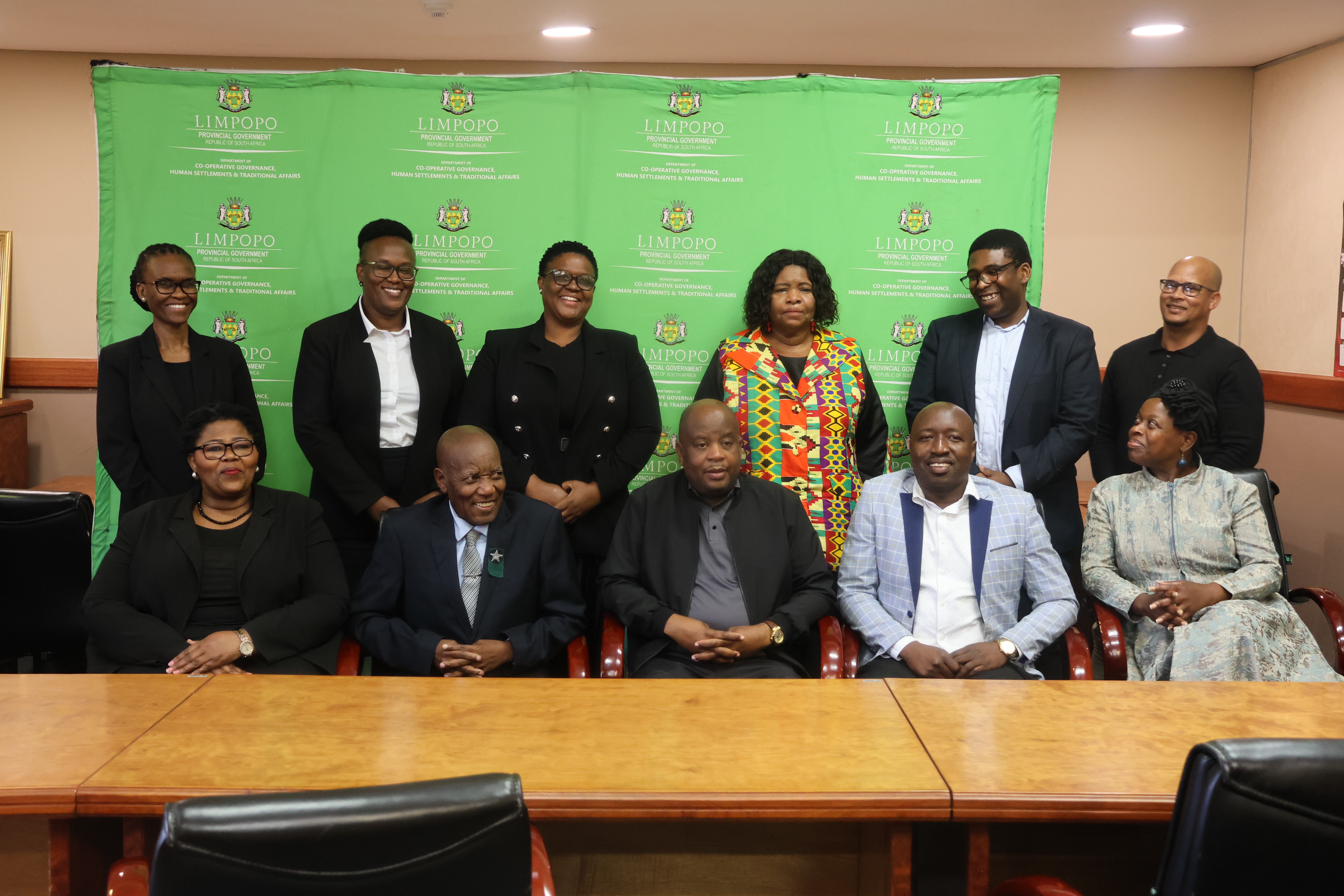 Mapula Maupye (Deputy Chairperson of the Housing Advisory Panel), Lediga Makhudu (Chairperson of the Housing Advisory Panel), Basikopo Makamu (MEC for CoGHSTA), Cedric Baloyi (Chairperson of the Limpopo Rental Housing Tribunal), Patricia Mugivi (Deputy Chairperson of the Rental Housing Tribunal)